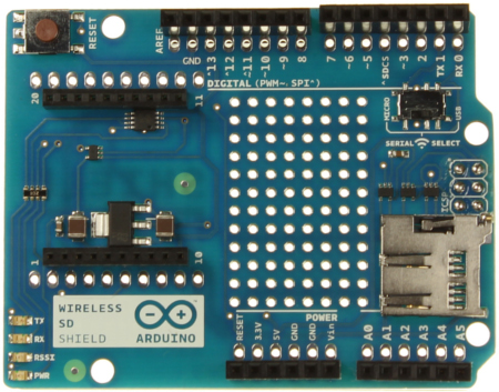 The Wireless SD shield allows an Arduino board to communicate wirelessly using a wireless module. It is based on the Xbee modules from Digi, but can use any module with the same footprint. The module can communicate up to 100 feet indoors or 300 feet outdoors (with line-of-sight). It can be used as a serial/usb replacement or you can put it into a command mode and configure it for a variety of broadcast and mesh networking options. The shields breaks out each of the Xbee's pins to a through-hole solder pad.