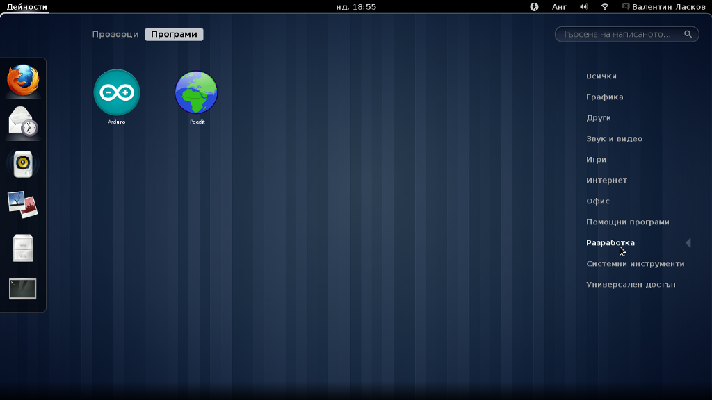 6. Можете да затворите прозореца "Инсталиране/деинсталиране на софтуер" и да стартирате програмата за работа с Arduino. Ще намерите Arduino IDE в раздела Програми -> Разработка.