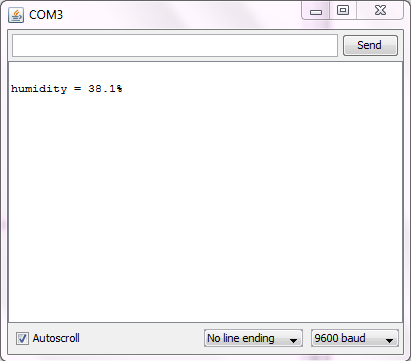 В дадения по-доло пример се използва алгоритъм за изглаждане на данните от сензора. Микроконтролерът използва усреднената стойност от десет измервания, за да получи относителната влажност по аналитичната зависимост по-горе. Изчислената стойност извежда в Serial Monitor, като проценти относителна влажност.