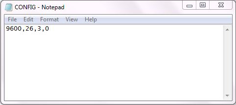Скоростта на серийната комуникация, начина за преминаване в команден режим и режима на работа при включване могат да се редактират на компютър от файла CONFIG.TXT.