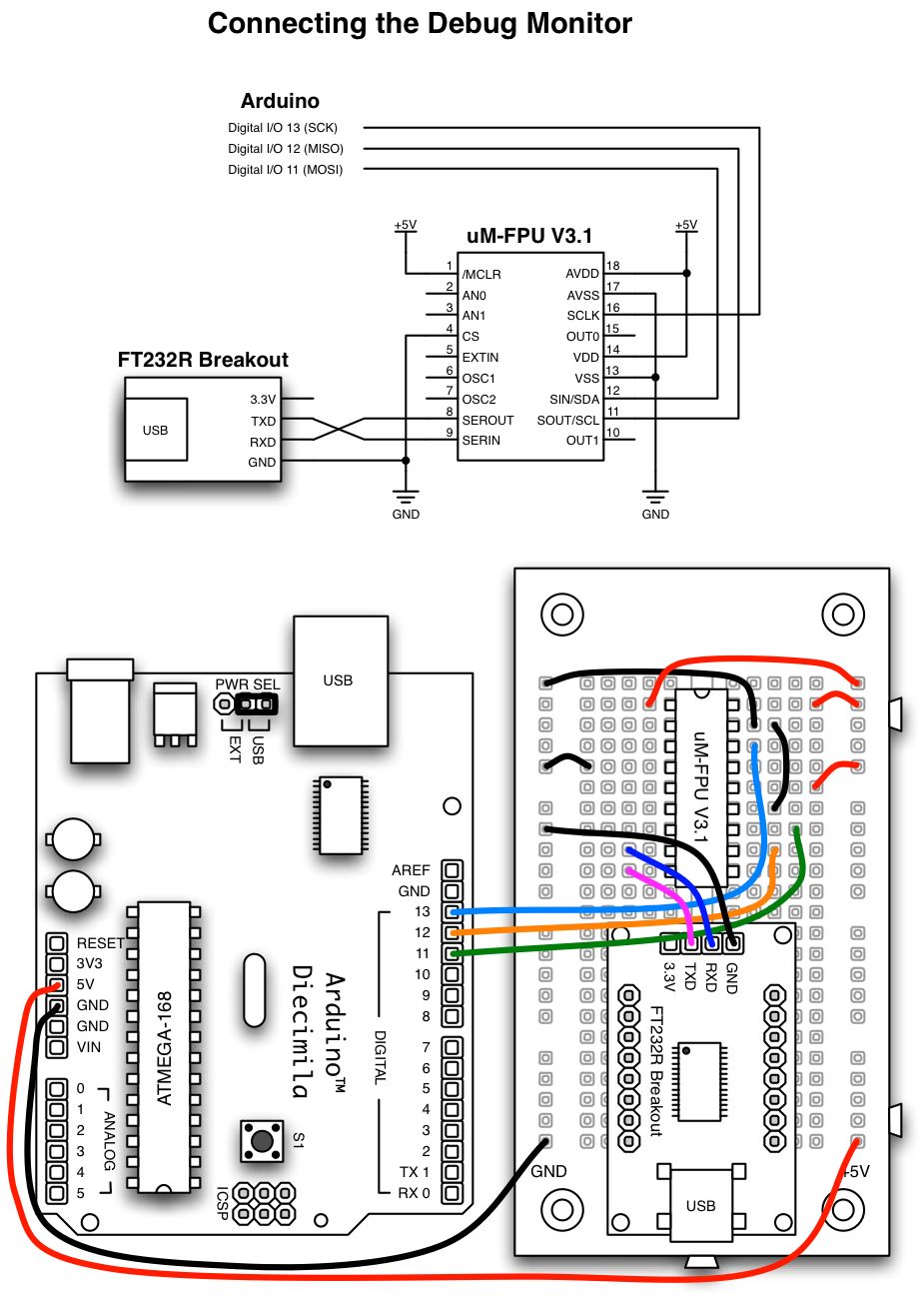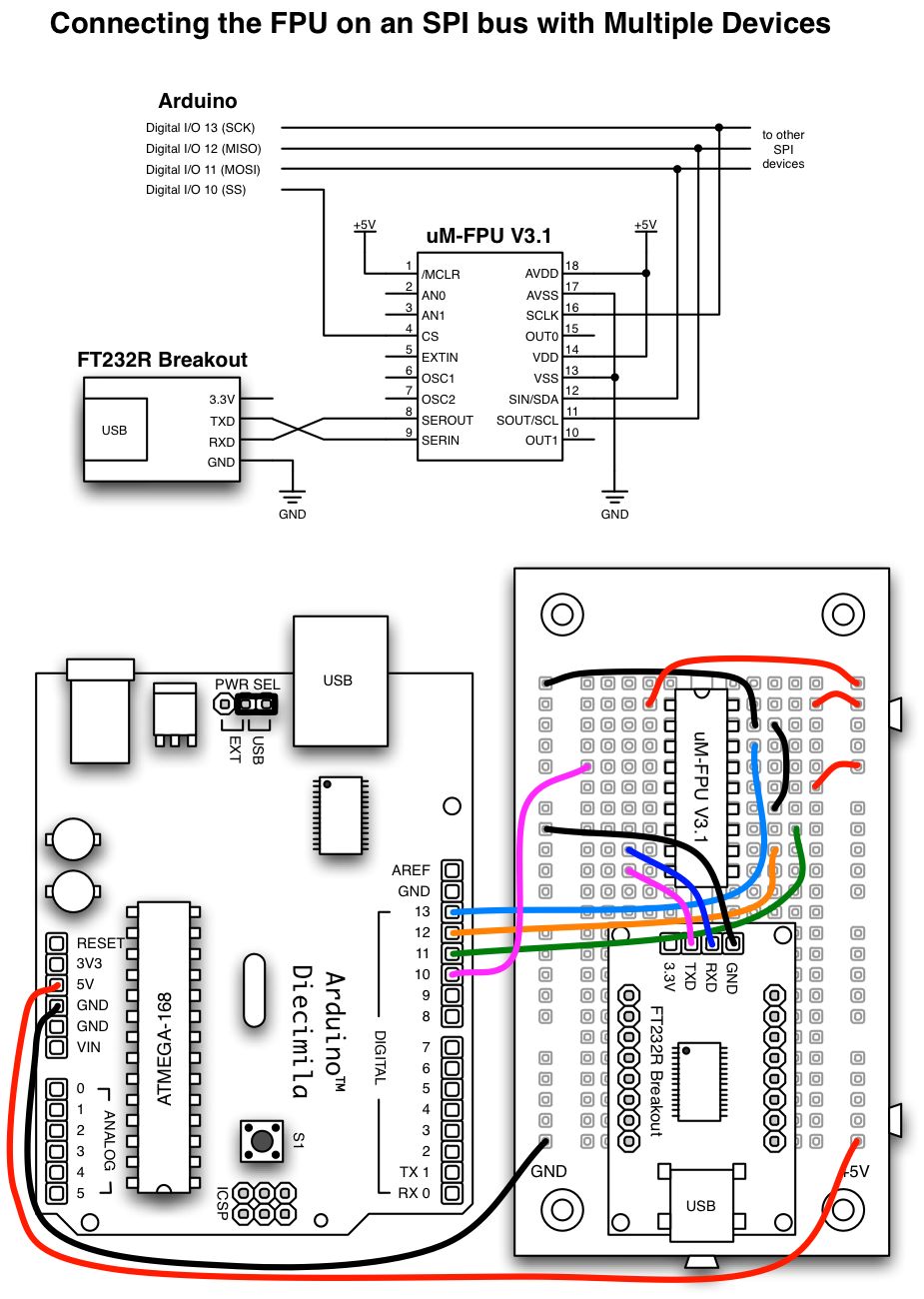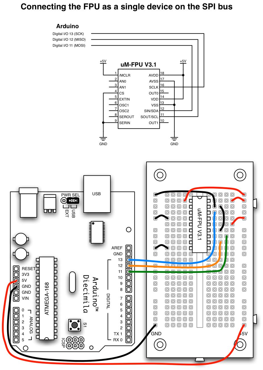 contained in the Spi library. See the following diagrams for examples of connecting the FPU.