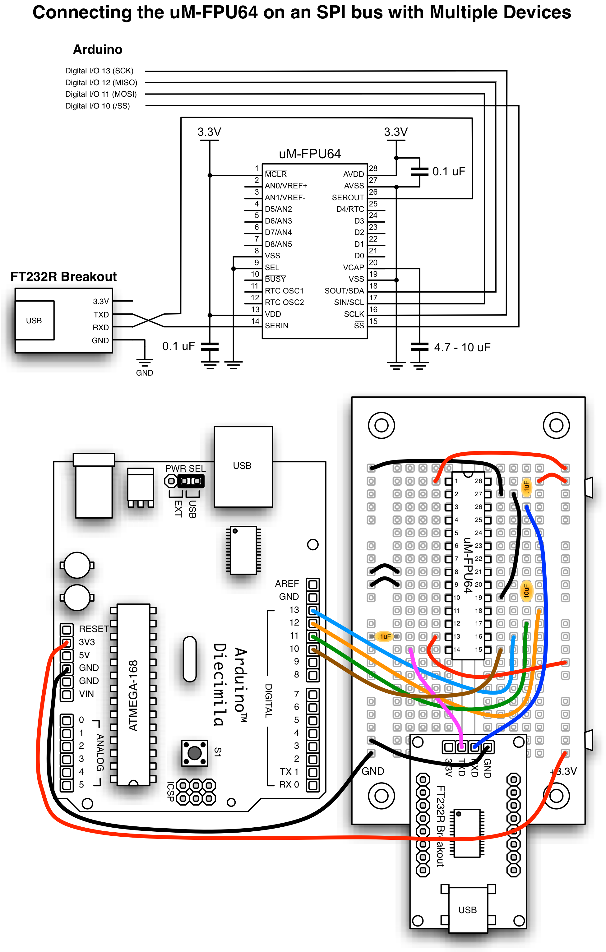 contained in the Spi library. See the following diagrams for examples of connecting the FPU.