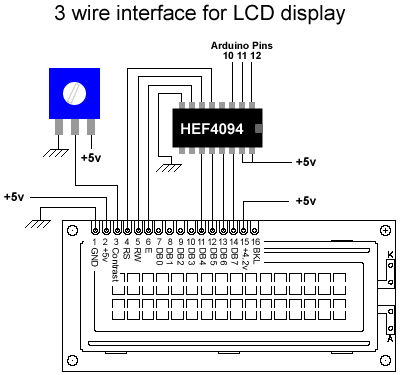 Also available is a library: Attach:LCD3WireLibrary.zip. To remain command-compatible with the LCD4BitLibrary, this library does not contain the number-formatting code which is included in the code below.