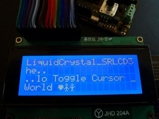 Below is the original code originally written to talk to this hardware setup. It does not work out of the box with arduino 1.0, and the library is much less featureful than LiquidCrystal. It is left here for historical purposes.