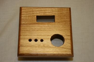 In a small box, drill three 1/4" holes for the LEDs, one 1 1/8" hole for the button switch, and a 5/8" x 1 5/8" rectangular hole for the HC4LED display. In the side of the box, make a 7/16" hole for the power connector. Wire the power connector to the Arduino power inputs.