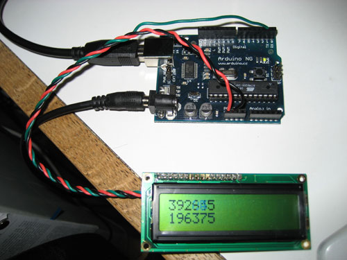 That code starts off with the backlight on, then on each loop it displays the current millisecond count on the top line, and millis()/2 on the bottom line. (just because i wanted different values.)