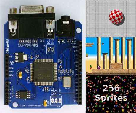 "Gameduino is a graphic and sound adapter for the Arduino, designed for video games."