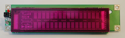 The VFD (vacuum fluorescent display) module from the discontinued HP z500 Series Digital Entertainment Center media PCs are a conveniently sized, bright display capable of displaying 2 rows of 16 character wide text and a number of A/V system icons. This page provides additional hardware details. See also the HpDecVfd library page.