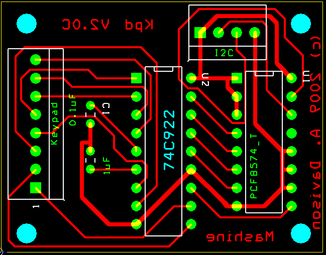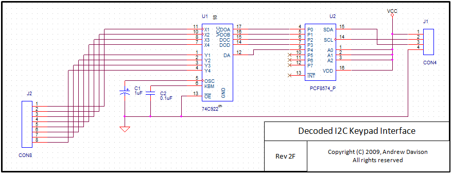 * a 74C922 keypad decoder, and then serialised using the PCF8574 I2C bus