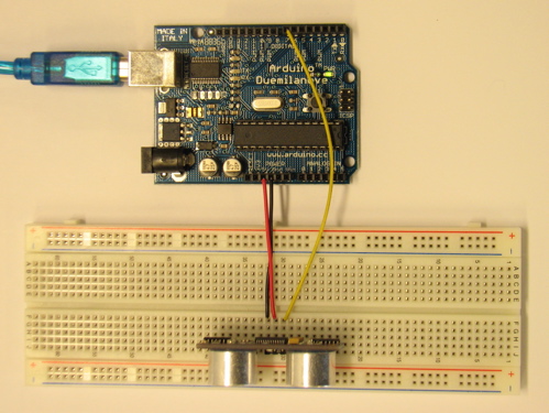 Ping))) é o nome de um sensor de distância por ultrassom da Parallax. Ele detecta a distância do objeto mais próximo à sua frente, até uma distância máxima de 3 m. Ele fica a enviar rajadas de ultrassom e a escutar o eco causado pela reflexão das ondas que colidem em um objeto. O Arduino envia um pequeno pulso elétrico para engatilhar a deteção e, depois, fica a observar se há o retorno de um pulso no mesmo pino. A duração desse segundo pulso é igual ao tempo gasto pela onda sonora ir até o objeto, refletir e retornar ao Ping))). Como sabemos a velocidade do som, calculamos a distância.