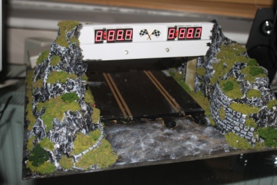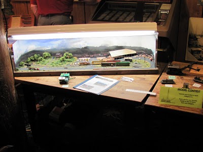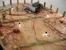 A 1' x 4' n-scale model train layout. Visitors press the button and the train moves back and forth slowly while sawmill sounds play in the background. I'm using an Adafruit motor shield to drive the train and a Adafruit wave shield to provide background sound. The layout can also be run as a shunting puzzle using a Wii Nunchuk to control train motion and turnouts (see the video).