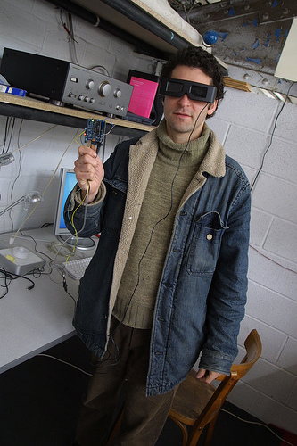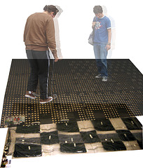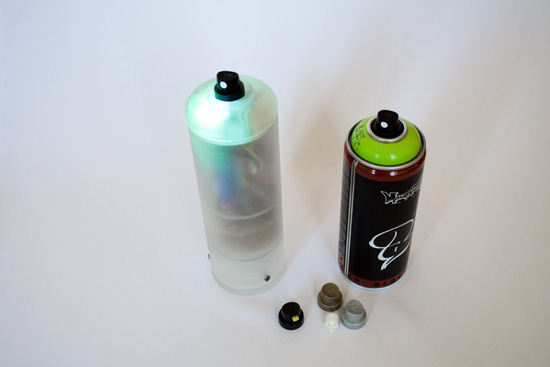 The spray can is built upon the Arduino platform and uses different sensors and electronic modules like a RFID reader, a super bright RGB LED, a Rotary Encoder, a Bluetooth module, a force sensitive resitor (FSR) and loads of wires and solder. visit my blog http://blog.formatlos.de/2008/12/01/digital-graffiti/.