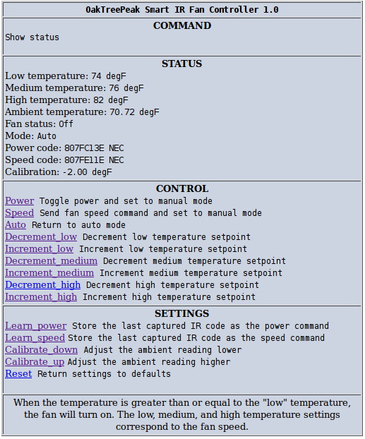 A Web configurable fan controller uses IR to remotely control a 3 speed pedestal fan to enable a pellet stove to do whole-house heating.