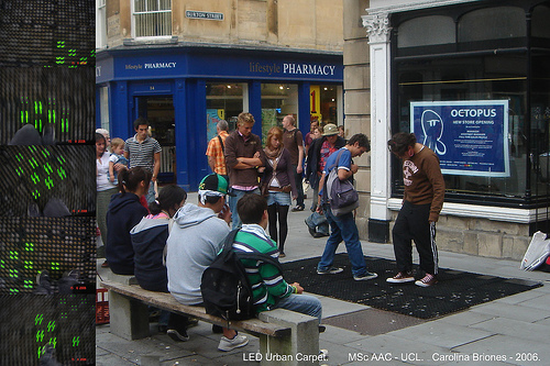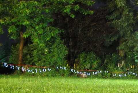 She's writing Cory Doctorows novel “Makers” with light. Cory released it under Creative Commons license. Thus anyone can remix it.