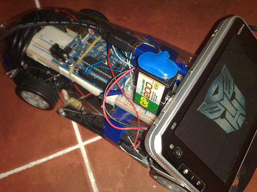 Arduino and N810 webtablet on the car to receive and apply commands , and N95 smartphone to send commands