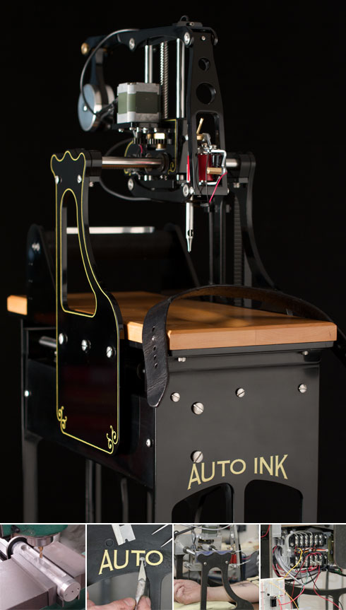 Auto Ink is a three axis numerically controlled sculpture. Once the main switch is triggered, the operator is assigned a religion and it’s corresponding symbol is tattooed onto the persons arm. The operator does not have control over the assigned symbol. It is assigned either randomly or through divine intervention, depending on your personal beliefs.