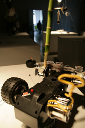 This is a kinetic sculpture. All movements are based on the calculation of mechanical engineering. It includes gears, actuators and motors etc. The sculpture also detects signals; a signal detector (for radio frequency (RF) signaling power from 50Mhz to 3GHz with 60dB dynamic range) with microcontroller (Arduino modified) acts as the central processing unit to trigger the whole kinetic movement, as well as the light and sound effects.