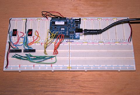 A C++ library which helps to manage any number of display connect to the Arduino digital outputs. This library is especially designed for 7-segments display, connected to a single, 3 wire data bus. The library is currently used in a real scoreboard application for my local basketball team!!