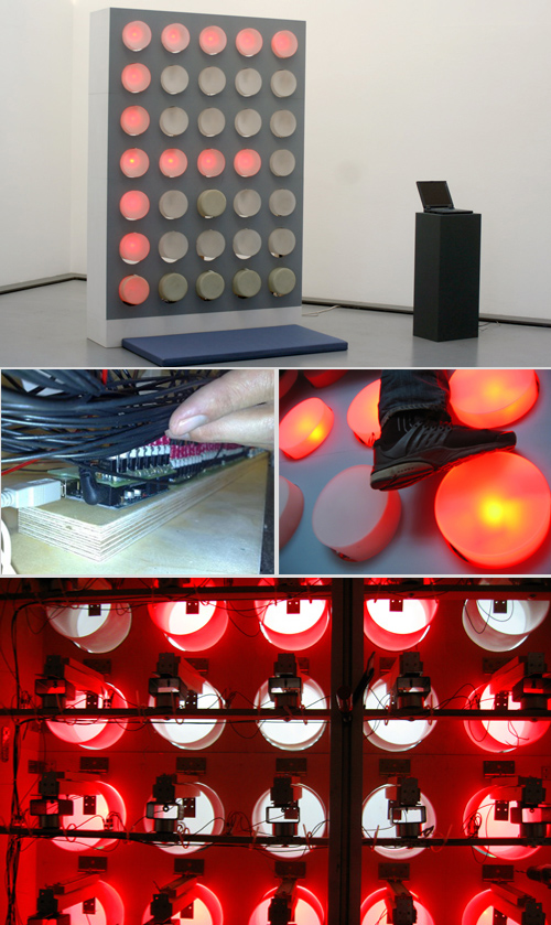 When the sculpture detects the active RF signal around, it reacts to phone calling, receiving, SMS/MMS in or out and data transcribing with 3G/bluetooth/wifi. The sculpture doesn’t detect non-active RF.