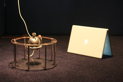 The arrangement includes six exceptional exhibits from the world of sounds and acoustics. At first sight looking trivial, each object incorporates a very unique ability. Built with processing and arduino.
