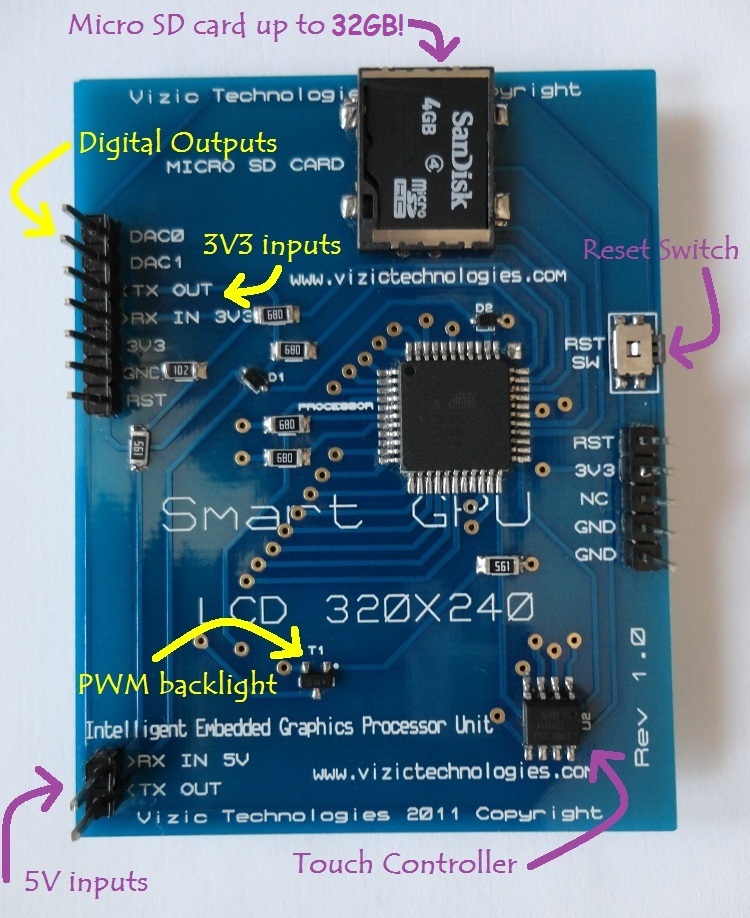 All the source code and Arduino SMARTGPU library can be found HERE, also within the .zip file there are many examples included.