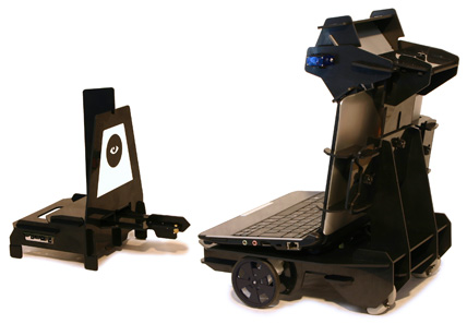 Oculus is an internet-controlled wifi robot that uses a small laptop (netbook) for brains, senses, and power.