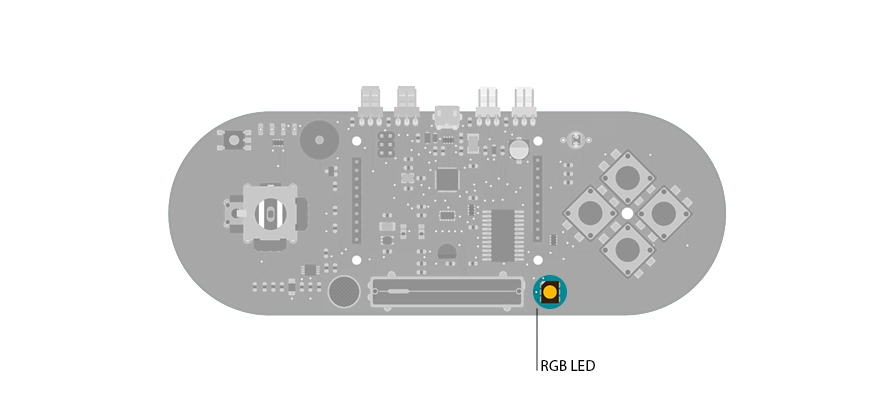 The RGB LED is comprised of three colors that represent the three primary colors: red, green, and blue.