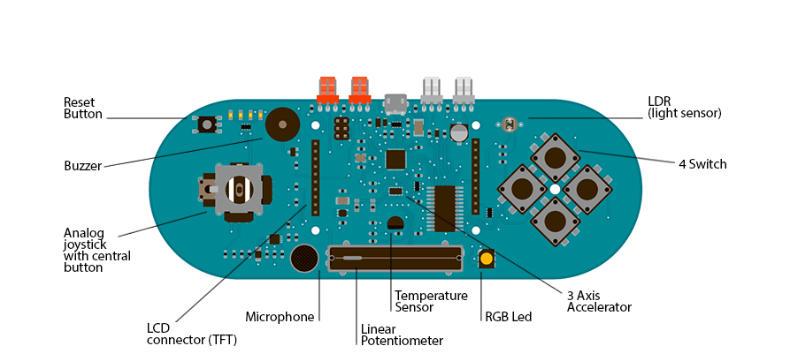 All sensor values will be displayed on the Esplora drawn on the computer screen, and you can command the buzzer and the RGB led with sliders, clicking on the component.