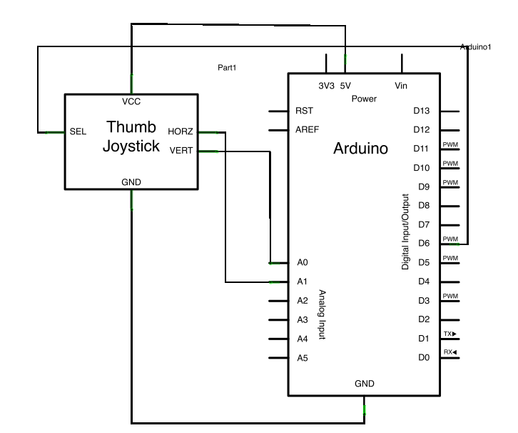 The pushbutton allows you to toggle mouse control on and off. A status LED connected to pin 5 lights when the Arduino is controlling the mouse.