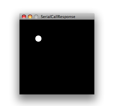 Copy the Processing sketch from the code sample above. As you change the value of the analog sensor, you'll get a ball moving onscreen something like this. When you turn the switch off, the ball will disappear: