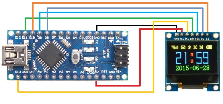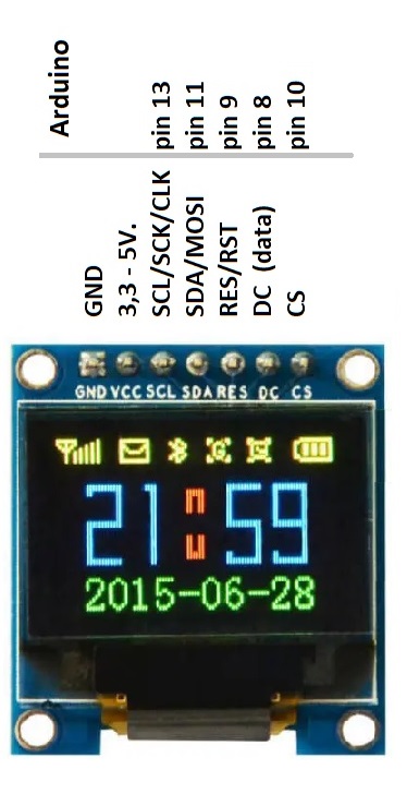 Het scherm is erg klein. Het heeft bijna hetzelfde formaat als het monochrome OLED-scherm (SSD1306). Maar de resolutie ervan is niet hetzelfde. Het heeft een resolutie van 96×64 pixels. Het heeft dus een lagere resolutie bij dezelfde grootte. Het kan 65 duizend kleuren weergeven! Het display dat ik heb gekocht, maakt gebruik van de SPI-interface, dus we moeten 7 pinnen aansluiten om het te laten werken. De monochrome die ik heb gekocht, gebruiken de I2C-interface die slechts 4 pinnen vereist. We hebben dus meer draden nodig om het met Arduino te verbinden. | ![]() |