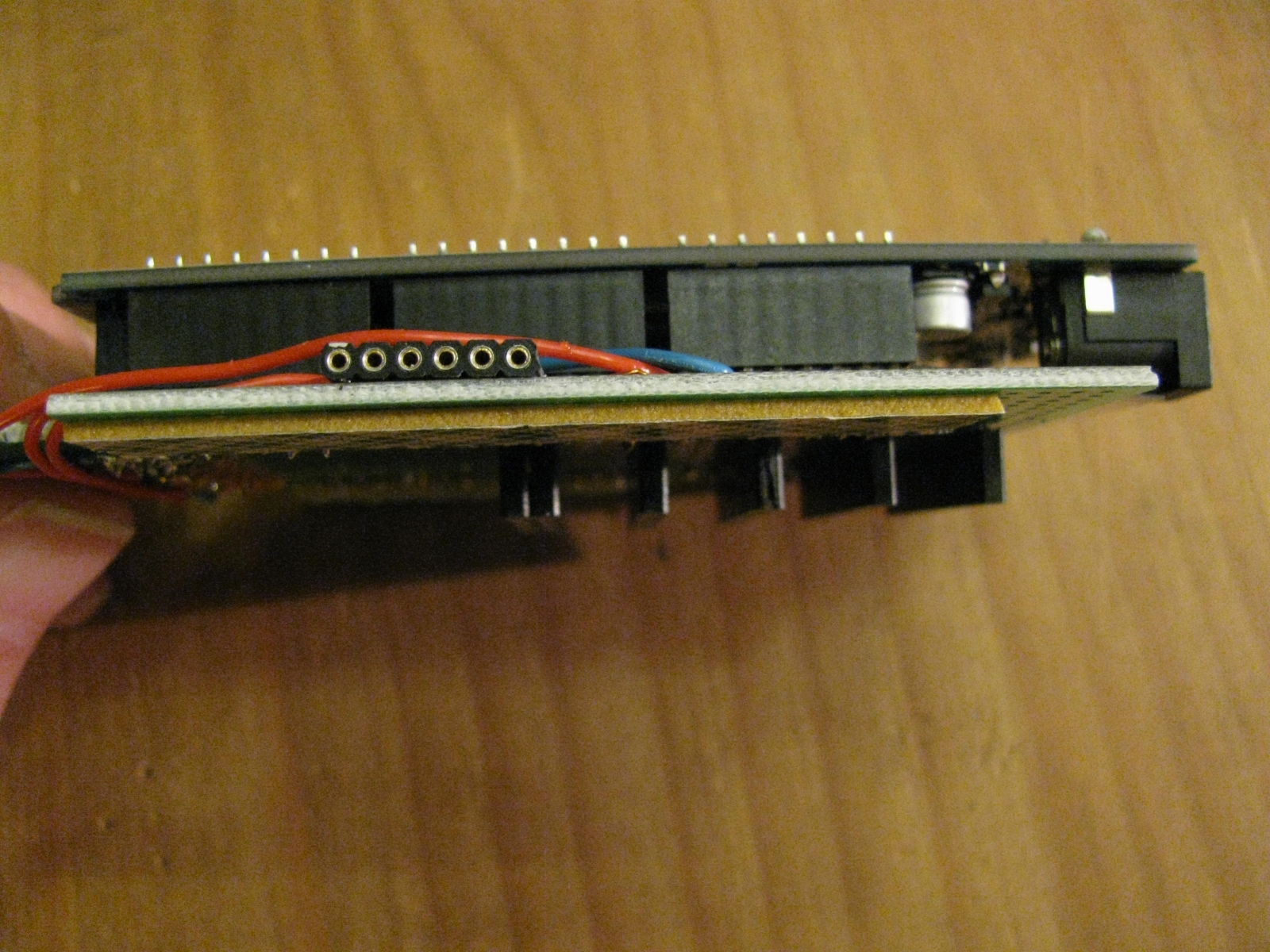 De applicatie print, helaas zijn de Arduino due aansluiting van een connector een beetje slordig gemaakt. Dan maar improviseren. (het losse stukje print, wordt los ingeprikt)