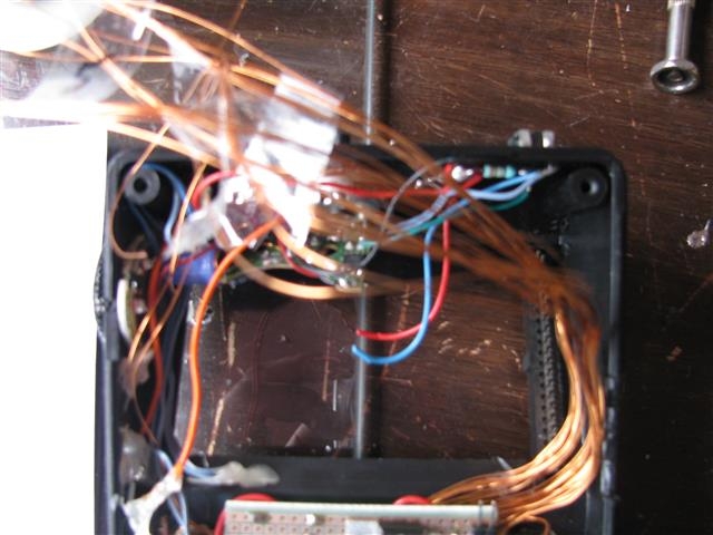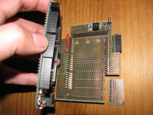 Eerst de opzet print aanluitingen van het LCD display verwijderen, de pin aansluitingen 22 t/m 46 vrijmaken.TFT scherm heeft totaal nl. zo’n 30 draden nodig.Scherm zelf voor presentatie: 16 data en 4 stuurlijnen.Touch deel: 6 lijnen.SD aansluiting: 3.Ik gebruik als display connector een 40 pins IDE kabel connector, deze is lekker compact.Dan om alles een beetje soepel te houden, wikkeldraad om de connector aan te sluiten.Veel werk, maar de moeite waard.