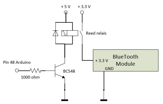Ik gebuik Serial1 (pin 18 en 19 ‘DUE’)Power pin 48 via een transistor schakeling in een reed relais. (omdat de spannings val van 0.6 V. teveel is)Key pin aan pin 47.