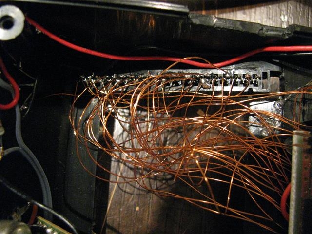De eerste 30 tal draadjes zijn gesoldeerd.