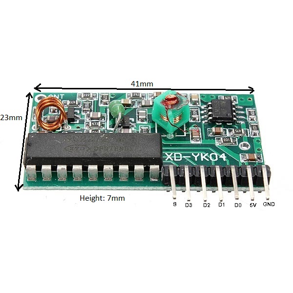 433MHz Ontvanger met RF afstandsbediening (YK04 4 kanalen)