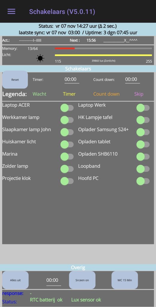 Ook zijn meerdere statussen op te vragen, extra functies uit te voeren, bijvoorbeeld Sleep stand.
