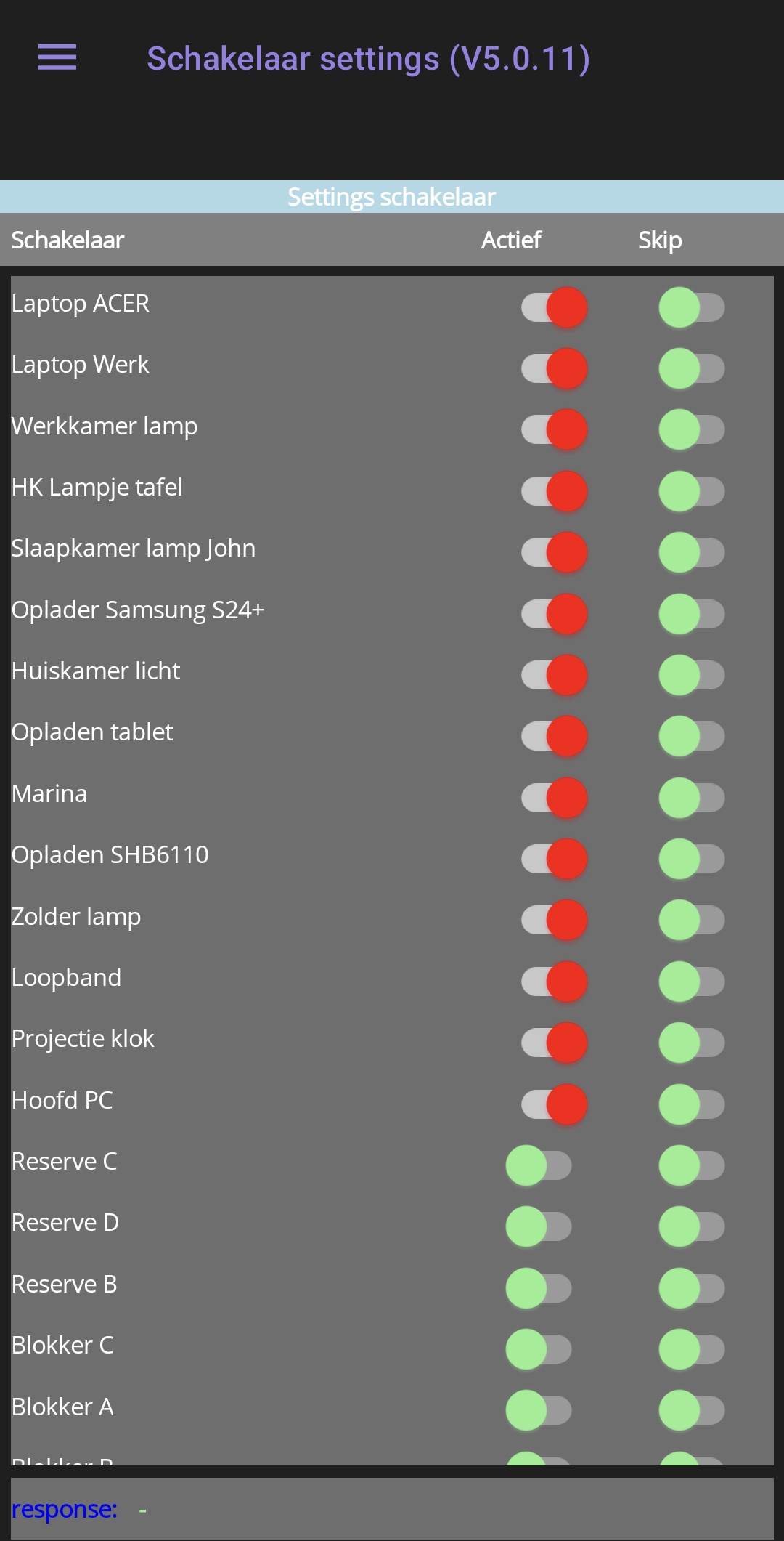 Scherm om schakelaars actief / inactief of 1x overslaan te zetten