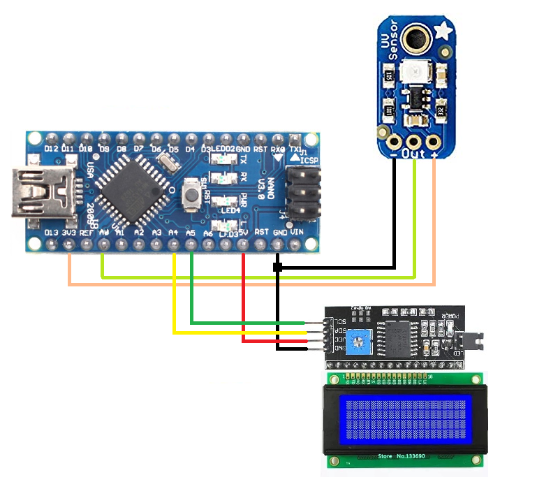 Analoge UV licht sensor breakout – GUVA-S12SD gebruikt een UV fotodiode, die 240-370nm verschillende lichte (waarvan UVB en UVA meeste spectrum omvat) kan detecteren. Het signaalniveau van de fotodiode is zeer klein, in het nano-ampere niveau. Met een opamp om het signaal te versterken voor een handelbaarder volt niveau.