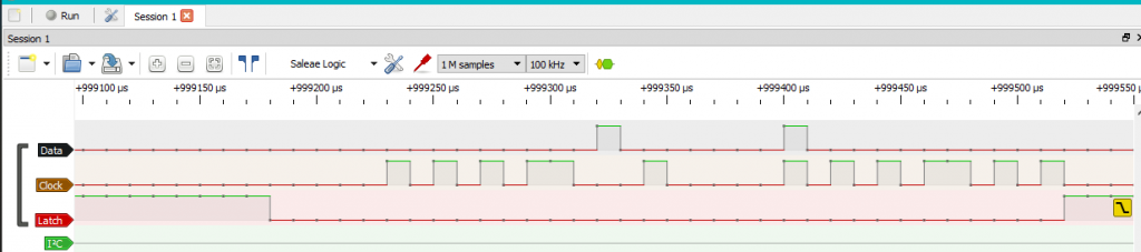 Data komt serieel binnen, als alle bites binnen zijn, latch (bevries) je de chip, en op de 8 data lijnen staan de 8 bit’s (Byte) data.