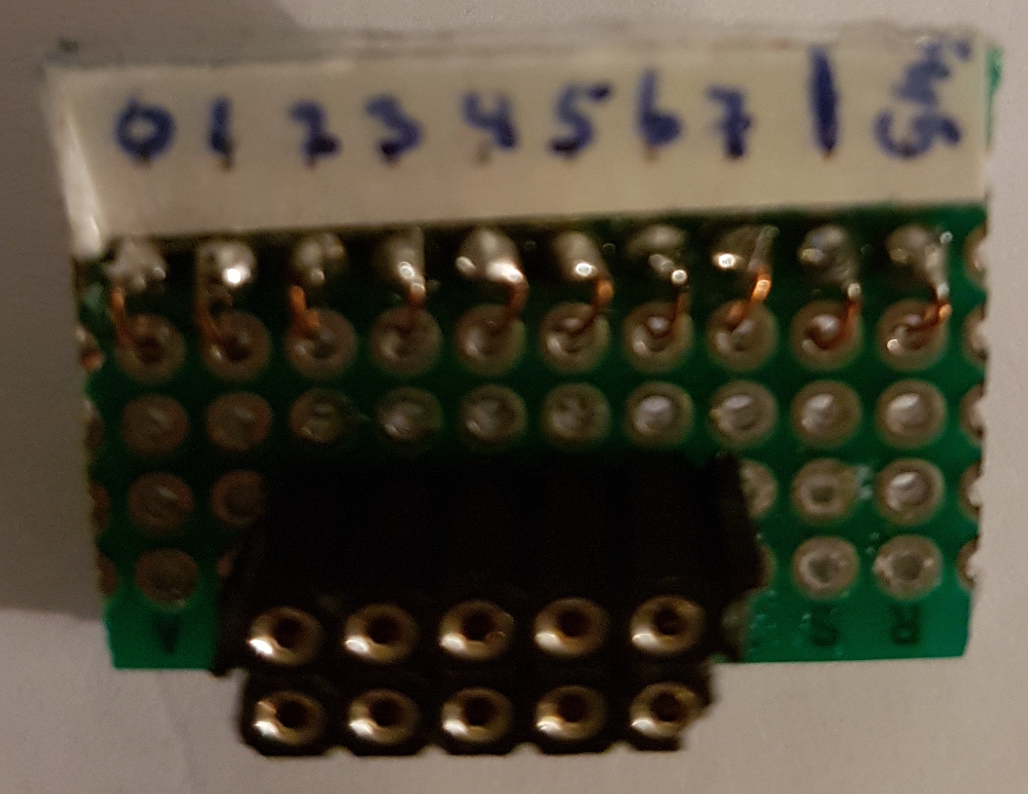Ik heb een klein tussenstuk gemaakt om hem makkelijker in een testboard te kunnen prikken.