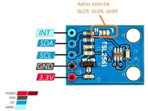 TSL2561 digitale lichtsensor. De TSL2561 licht sterkte sensor is een geavanceerde digitale lichtsensor, ideaal voor gebruik in een breed scala aan lichtsituaties. In vergelijking met goedkope CdS-cellen is deze sensor nauwkeuriger, waardoor hij exacte lux-berekeningen mogelijk maakt en kan worden geconfigureerd voor verschillende versterkings- / timingbereiken om lichtbereiken tot 0,1 – 40.000+ Lux direct te detecteren. Het beste van deze sensor is dat hij zowel infrarood- als volspectrum diodes heeft. Dat betekent dat u afzonderlijk infrarood, volledig spectrum of voor de mens zichtbaar licht kunt meten. De meeste sensoren kunnen alleen het een of het ander detecteren, wat niet nauwkeurig weergeeft wat menselijke ogen zien (aangezien we het IR-licht dat door de meeste fotodiodes wordt gedetecteerd niet kunnen waarnemen).