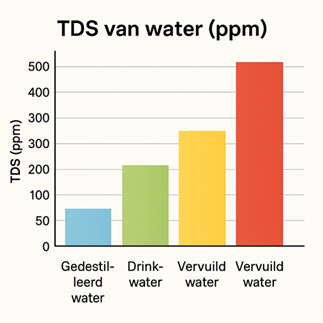 In Nederland ligt de gemiddelde TDS-waarde tussen 100 en 250 ppm. Een hogere TDS-waarde kan de smaak en geur van water beïnvloeden en mogelijk schadelijke stoffen bevatten. Wil je jouw water testen? Een TDS-meter kan helpen om de kwaliteit van je drinkwater te meten.