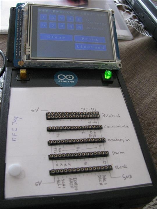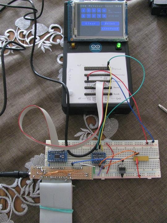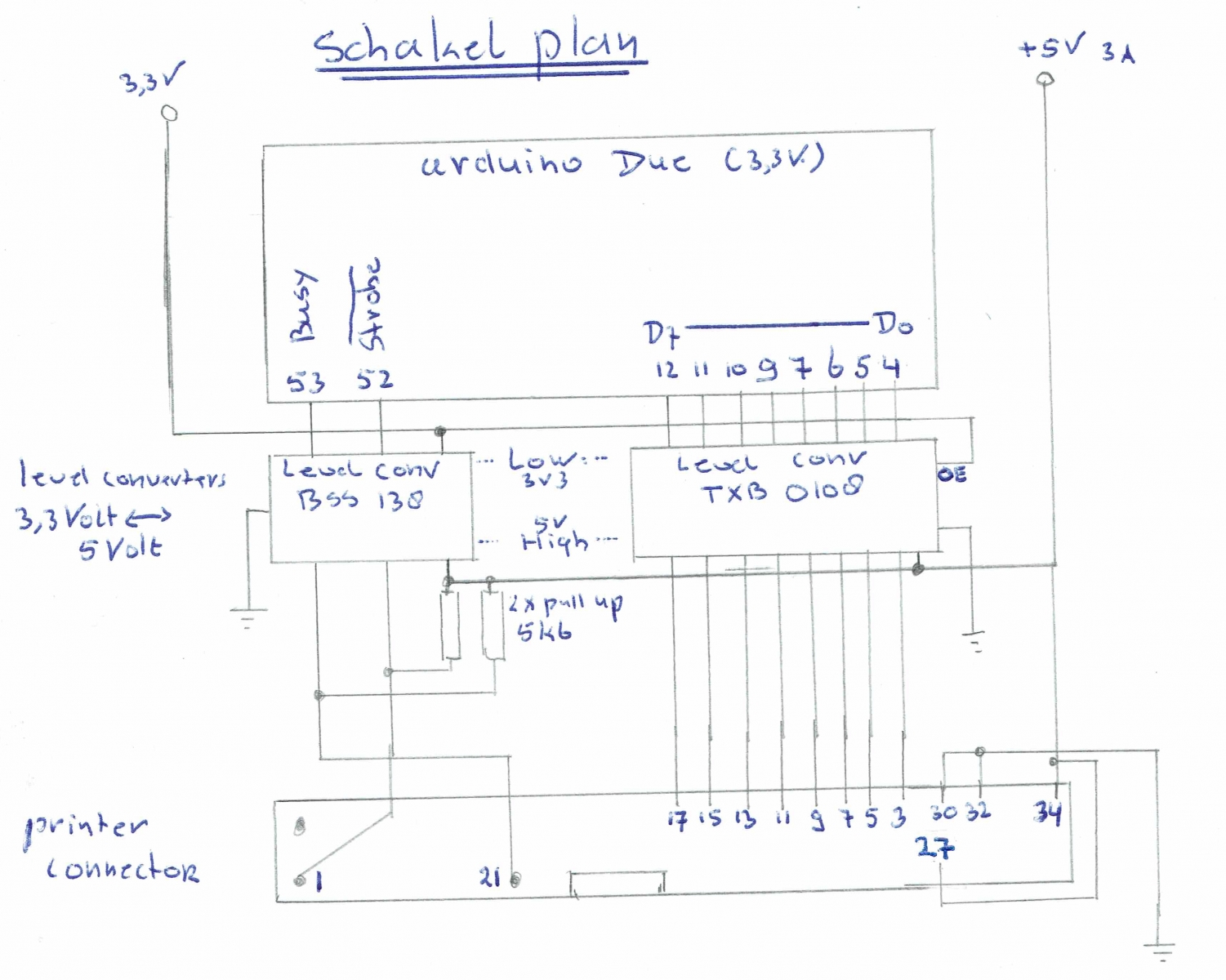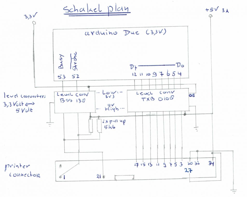 Arduino Due kan printen, hoe... (via Centronics poort) Benodigdheden Arduino dueLevel shifters, 3,3V <–> 5 V Zie ook BSS138 4-ch level shifterTest board2 weerstanden 5k6FlatcableCentronics Printer (DPU20-20CF) Onderdelen in detail Adrduino DUE Test board Centronics printer (her de DPU20-20CF) Tussenkabel voor de printer te koppelen met het testboard Ontwerp aansluit schema Alles bijeen Downloads Code voorbeeld: Centronic Printer (14 downloads ) Tue 11 November 2025