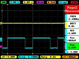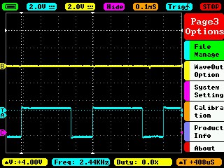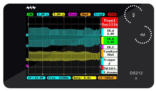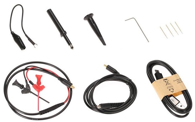 Ingebouwde signaalgenerator/10 Hz-1 MHz rechthoekig signaal (instelbare toetsverhouding) of 10 Hz-20 KHz sinus/rechthoekig/driehoekig/zaagtandas. Ingebouwde lithiumbatterij 3,7 V 500 mAh, heeft een micro-USB-interface voor het opladen.