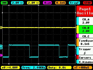 2 kanalen, 1 MHz bandbreedte, 1 MΩ ingangsimpedantie, 10 MSa/s max. voorbeeldafbeelding. Rising/valing-trigger; instelbaar hoog/laag-triggerniveau en triggergevoeligheid.