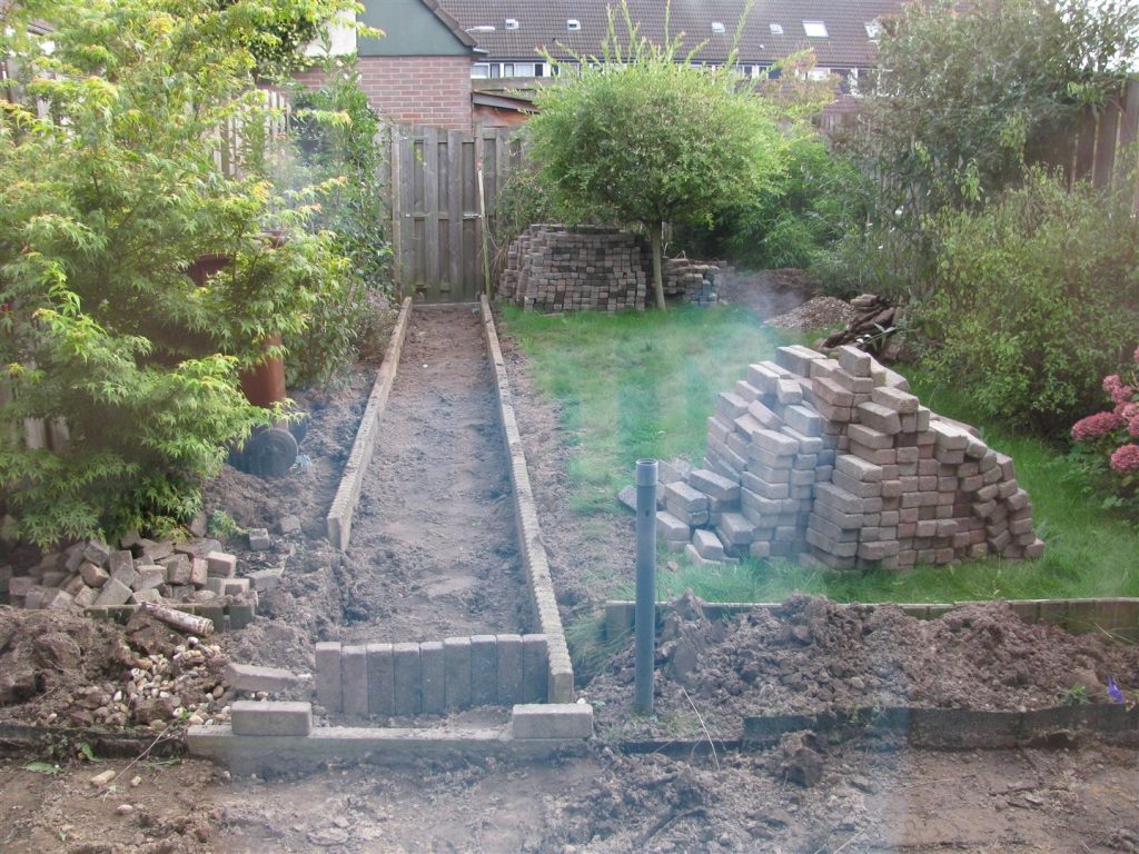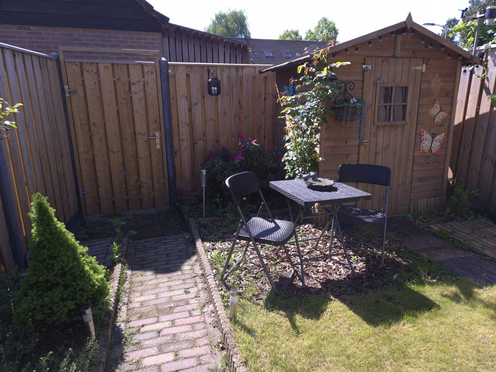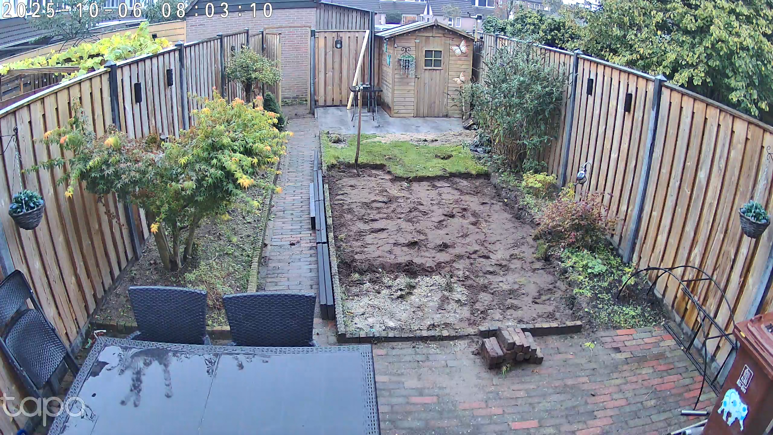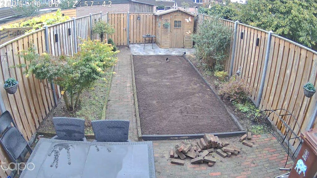 Het deel waar het schuurtje op stond was ook niet alles. Hus het achterste deel van grote tegels voorzien. Dit ziet er toch veel strakker uit!
