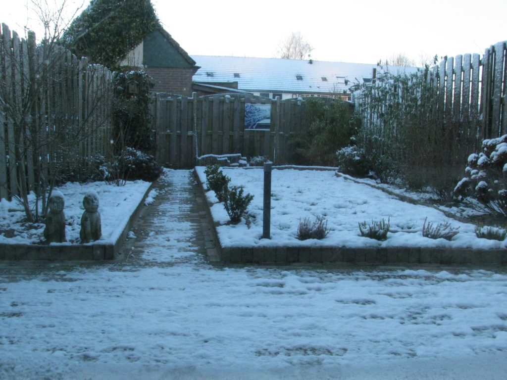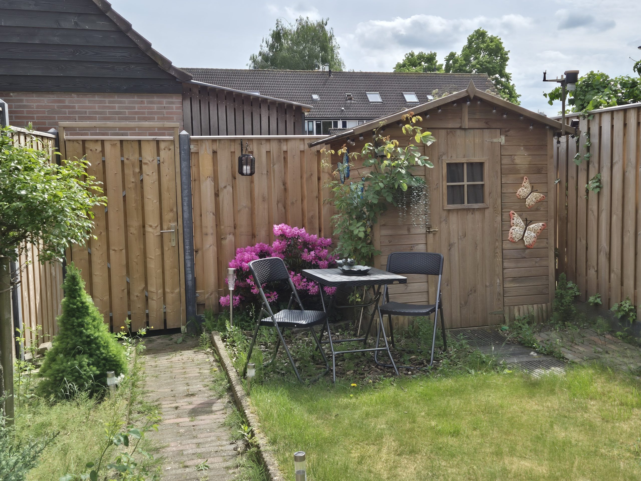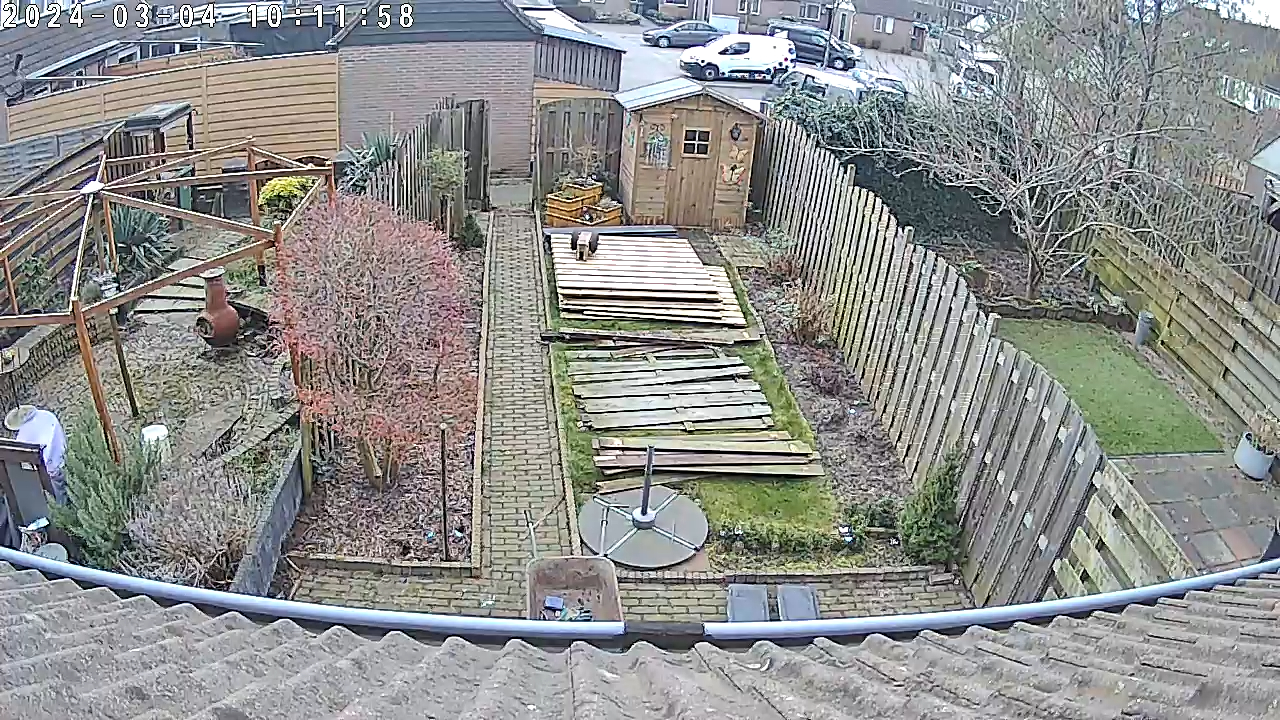 Het deel waar het schuurtje op stond was ook niet alles. Hus het achterste deel van grote tegels voorzien. Dit ziet er toch veel strakker uit!