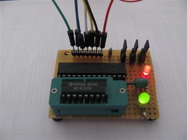 De IC tester heeft 7 aansluitingen (van links naar rechts):