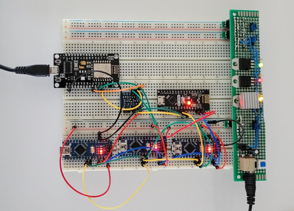 Hieronder vind je een leuk projectje, 1 Master ESP8266 en 4 Slaves NANO.